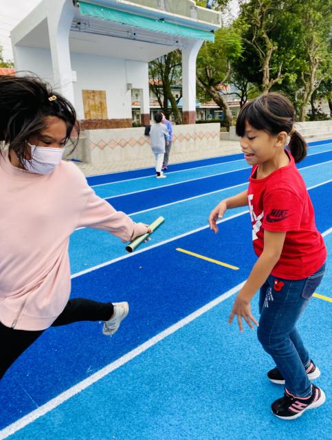 第一次在新的跑道上全校進行大隊接力比賽,既興奮又幸福! 你看我們的表情就知道囉!