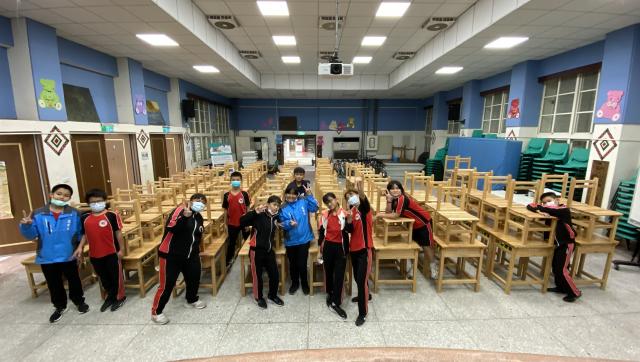等了好久~新桌椅終於來啦! 感謝六年級學長姐協助將桌子依高度分類,明天我們就可以搬進教室,坐著新的椅子,倚著新的桌子上課、寫作業,只是桌椅有點兒重。 後記~三甲小女生告訴我說,新桌椅很香,每天上課都香香的 真的嗎?我低下頭,用力的吸,好像有那麼一點......