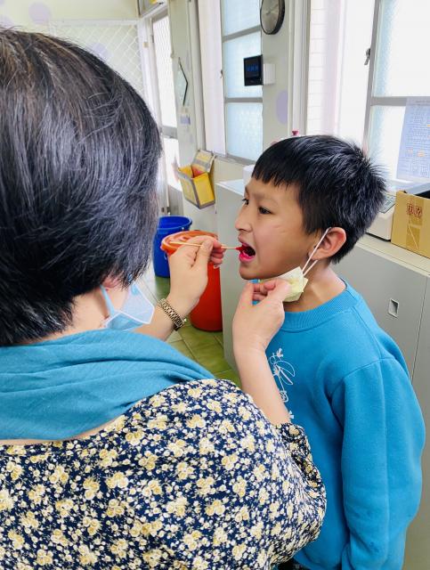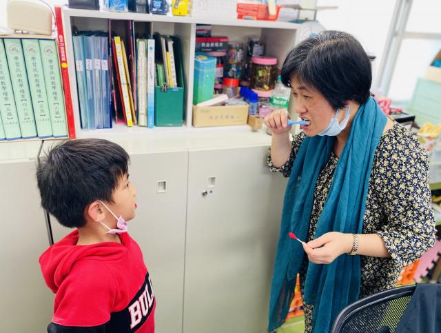 玉梅主任擔任導護,一定會做牙菌斑抽檢,所以,孩子刷牙很勤奮