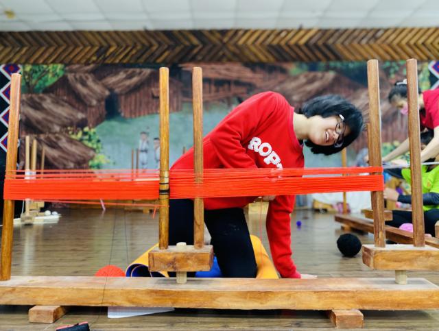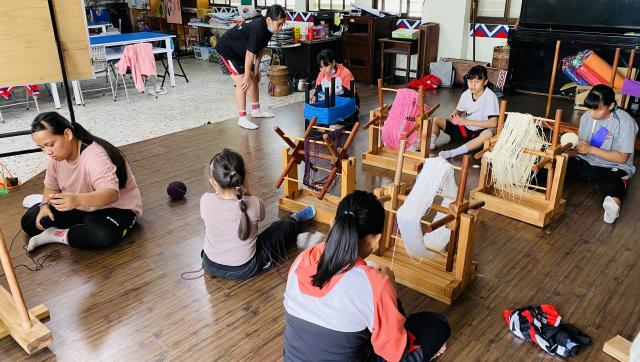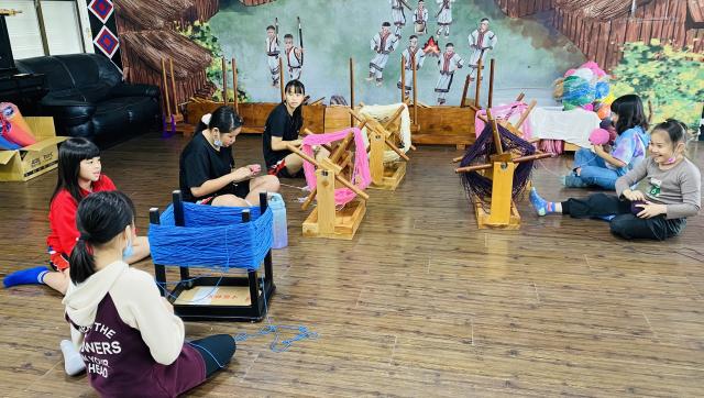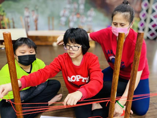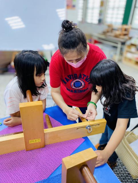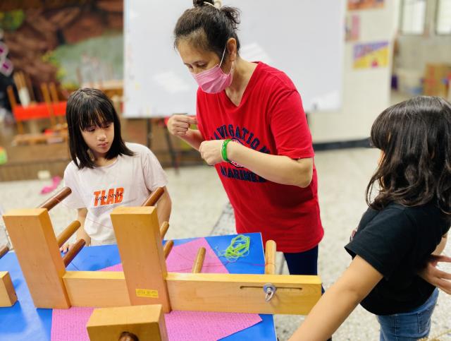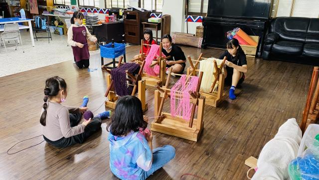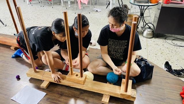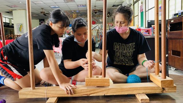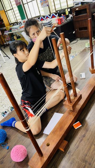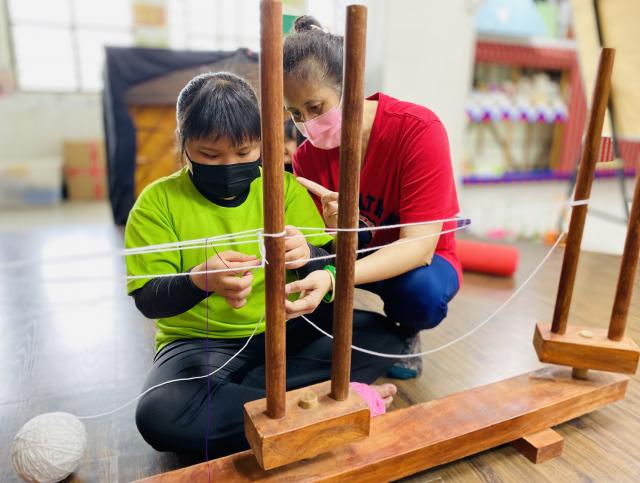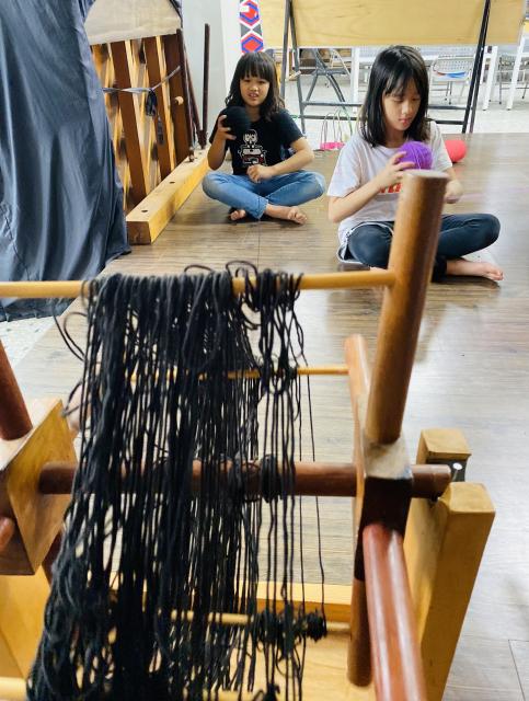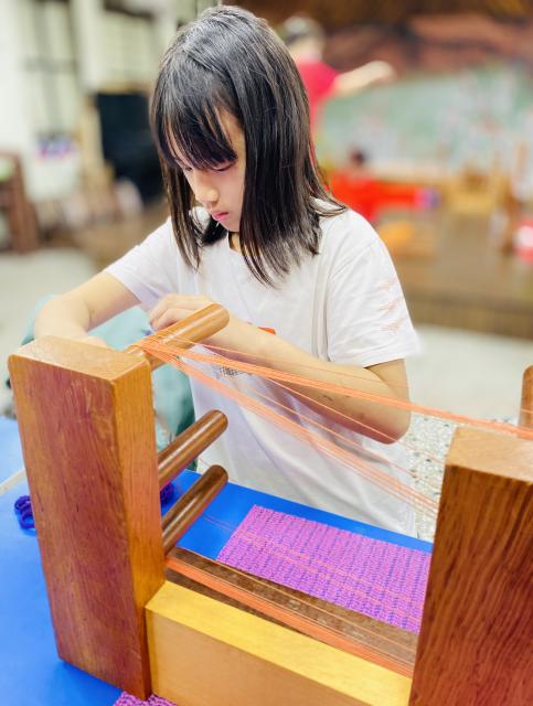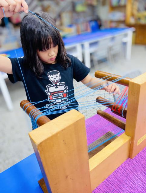 織布需要細心、耐心~所以假日的午後也來個蹦蹦吧!