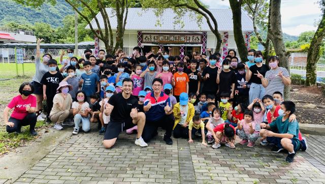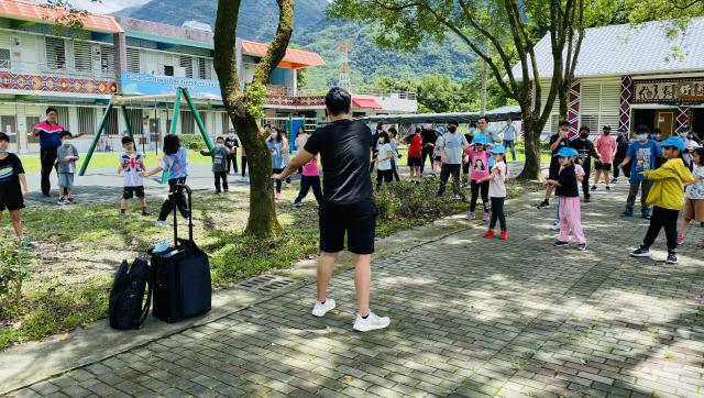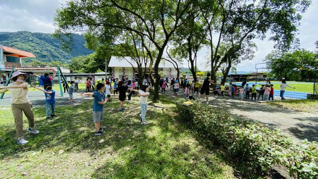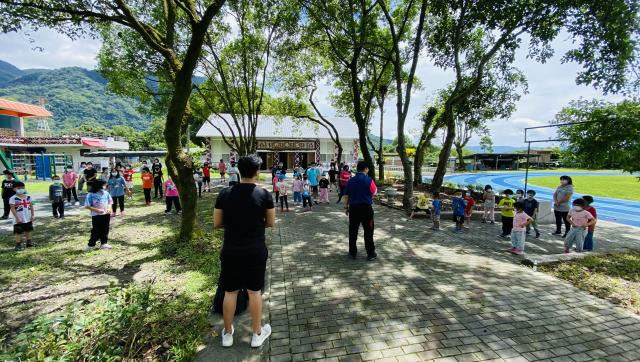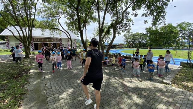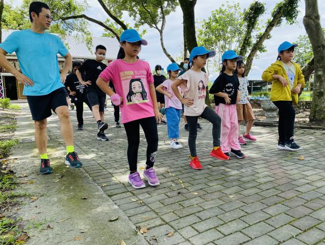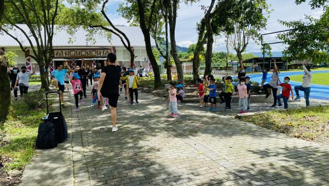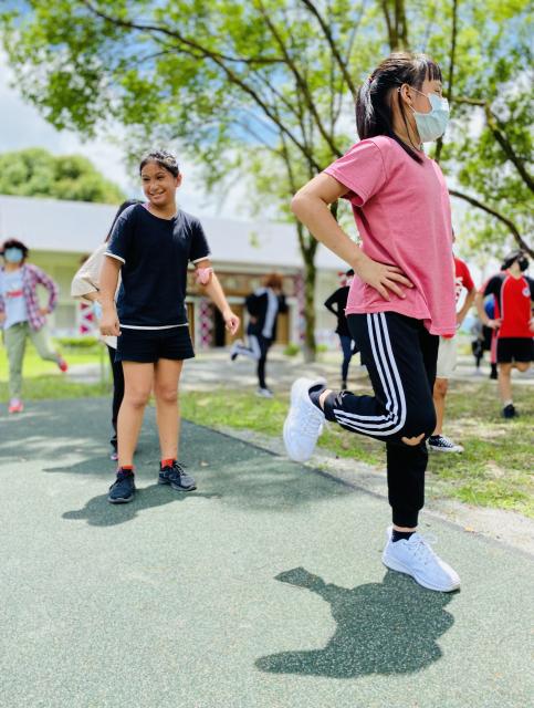 陽光下的樹蔭下,我們跟著帥哥老師的口令,擺動、延展身體~哇哇哇!做完半小時,汗水淋漓、全身舒暢-爽!