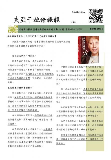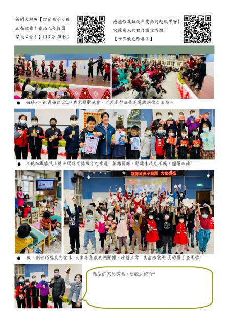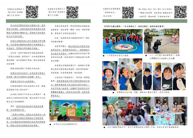 1.教養觀念分享 2.反毒教育宣導 3.交通安全教育宣導