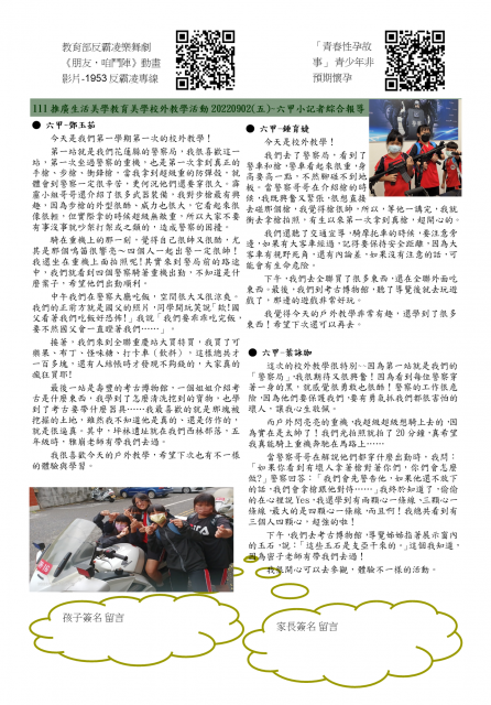 1.開學防疫宣導 2.本學期師長介紹 3.資訊分享~多走路有意孩童身心發展 4.推廣美感教育校外教學報導