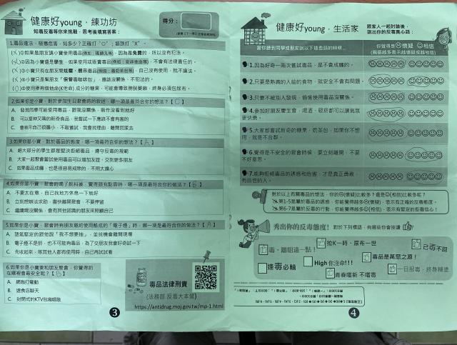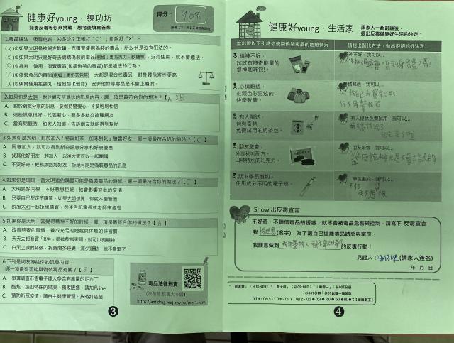 平日反毒宣導,暑假不毒特~ 孩子的學習單