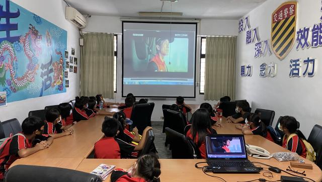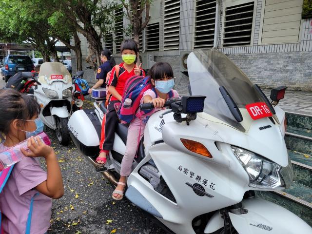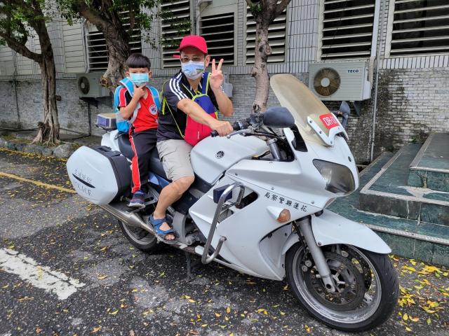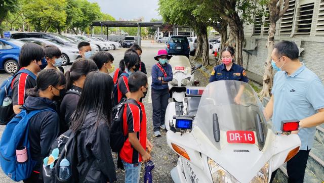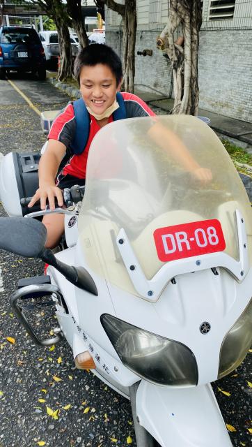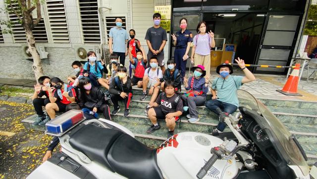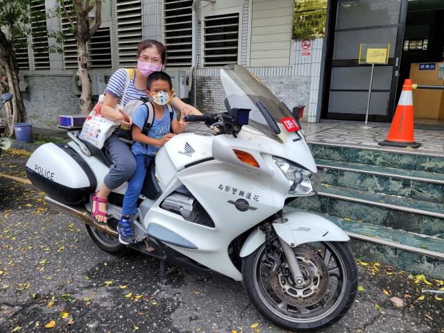 我騎在重機上的那一刻,覺得自己很帥又很酷,尤其是那個鳴笛很響亮~四個人一起出警一定很帥!我還坐在重機上面拍照呢!其實來到警局前的路途中,我們就看到四個警察騎著重機出勤,不知道是什麼案子,希望他們出勤順利。