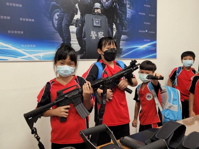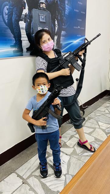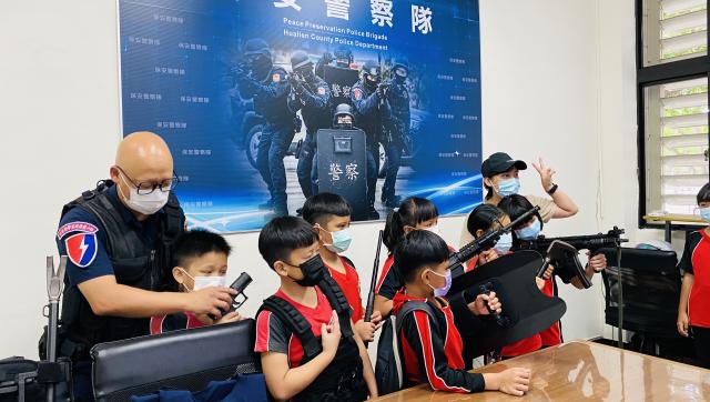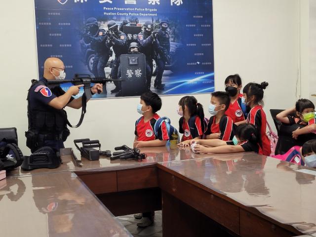 第一站就是我們花蓮縣的警察局,我很喜歡這一站,第一次坐過警察的重機,也是第一次拿到真正的手槍、步槍、衝鋒槍,當我拿到超級重的防彈殼,就體會到警察一定很辛苦,更何況他們還要穿很久。霹靂小組哥哥還介紹了很多武器裝備,我對步槍最有興趣,因為步槍的外型很酷、威力也很大,它看起來很像很輕,但實際拿的時候超級無敵重,所以大家不要有事沒事就吵架打架或之類的,造成警察的困擾。