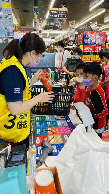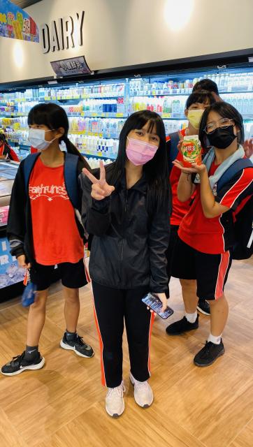 接著,我們來到全聯重慶站大買特買,我買了可樂果、布丁、怪味糖、打卡車(飲料),這樣總共才一百多塊,還有人結帳時才發現不夠錢的,大家真的瘋狂買耶!