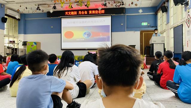 聽完傅俊老師分享月全食,我們就期待這天晚上的到來,晴朗無雲,西林的師生們無不睜大眼睛慣看月亮一點一點沒了光,成了暗紅的血月,再慢慢回復成白玉盤,那個晚上,雖然我們分落各地,但我們望著同一個月亮-很特別的感覺。