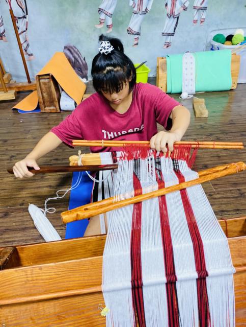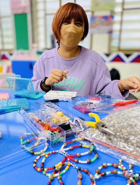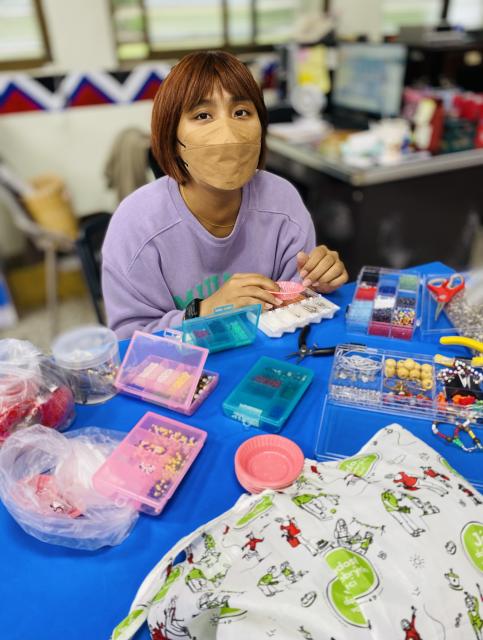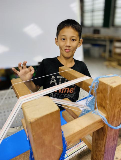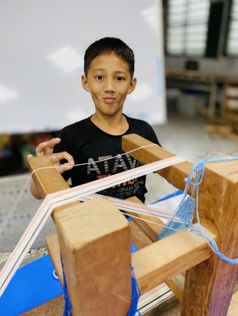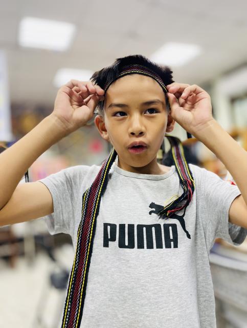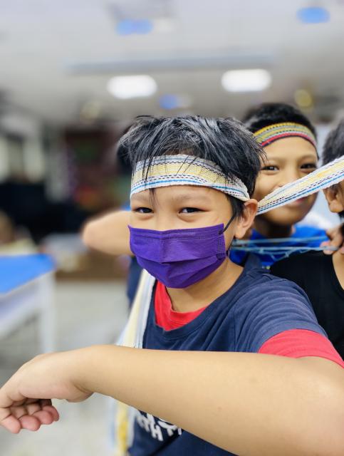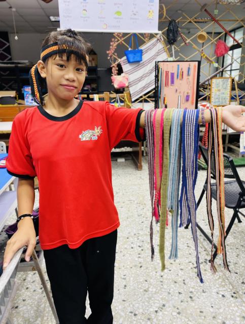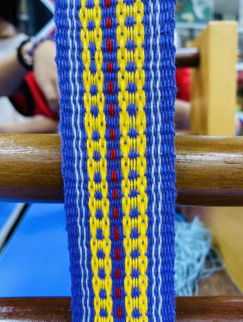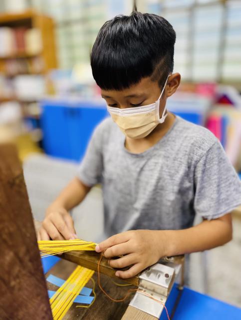● 111.11.15織布不是女生的專利 五甲幾個男生平時活蹦亂跳,嘴巴也沒閒著……,沒想到一接觸到織布,心竟也能靜得下來,無論配色或技巧都令人驚豔,很可以!