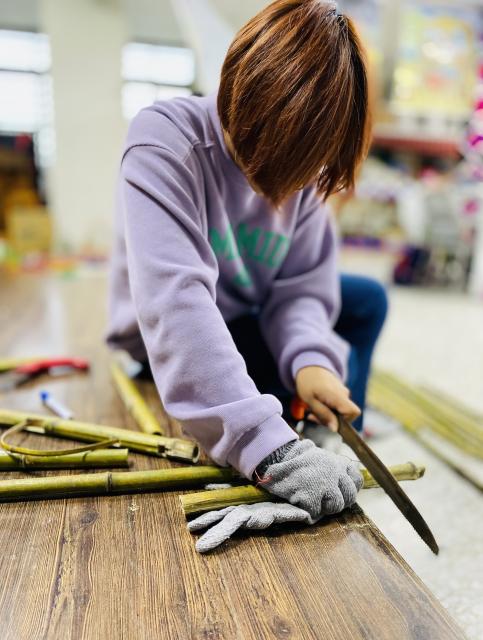 ● 111.11.15織布不是女生的專利 五甲幾個男生平時活蹦亂跳,嘴巴也沒閒著……,沒想到一接觸到織布,心竟也能靜得下來,無論配色或技巧都令人驚豔,很可以!
