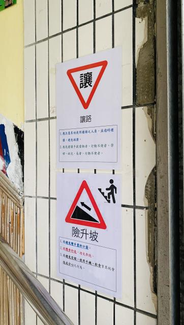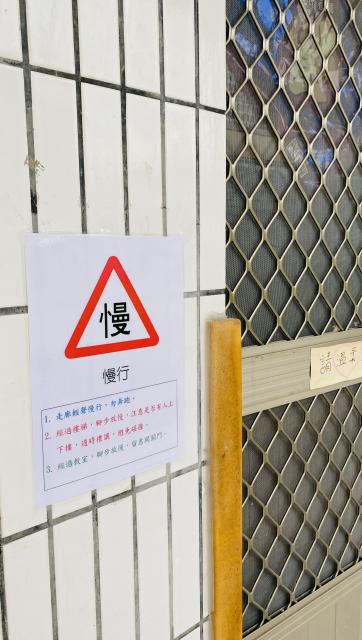 樓梯對於活蹦亂跳的孩子來說,只要稍微沒提醒,就可能是一個危險的地方。 除了交通標誌外,加了文字提醒,如果每個人都能注意,且彼此提醒,那上下樓一定安全多了。