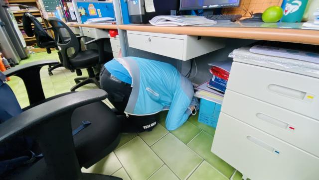 天災難防,尤其是地震,身處地震頻繁的花蓮,防災演練不嫌多,做多了,自然內化,讓趴掩穩成為自然的反射動作。