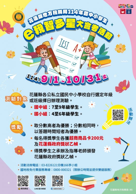 | 一、 | 依據本局「114年推行統一發票兌獎多元服務措施辦理國中小學生『e稅智多星』大會考活動實施計畫」辦理。 |