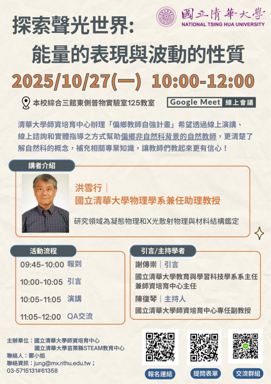| (四) | 內容:本場講座將進行聲與光相關的演示,並提供器材予實體與會者進行實作。 |